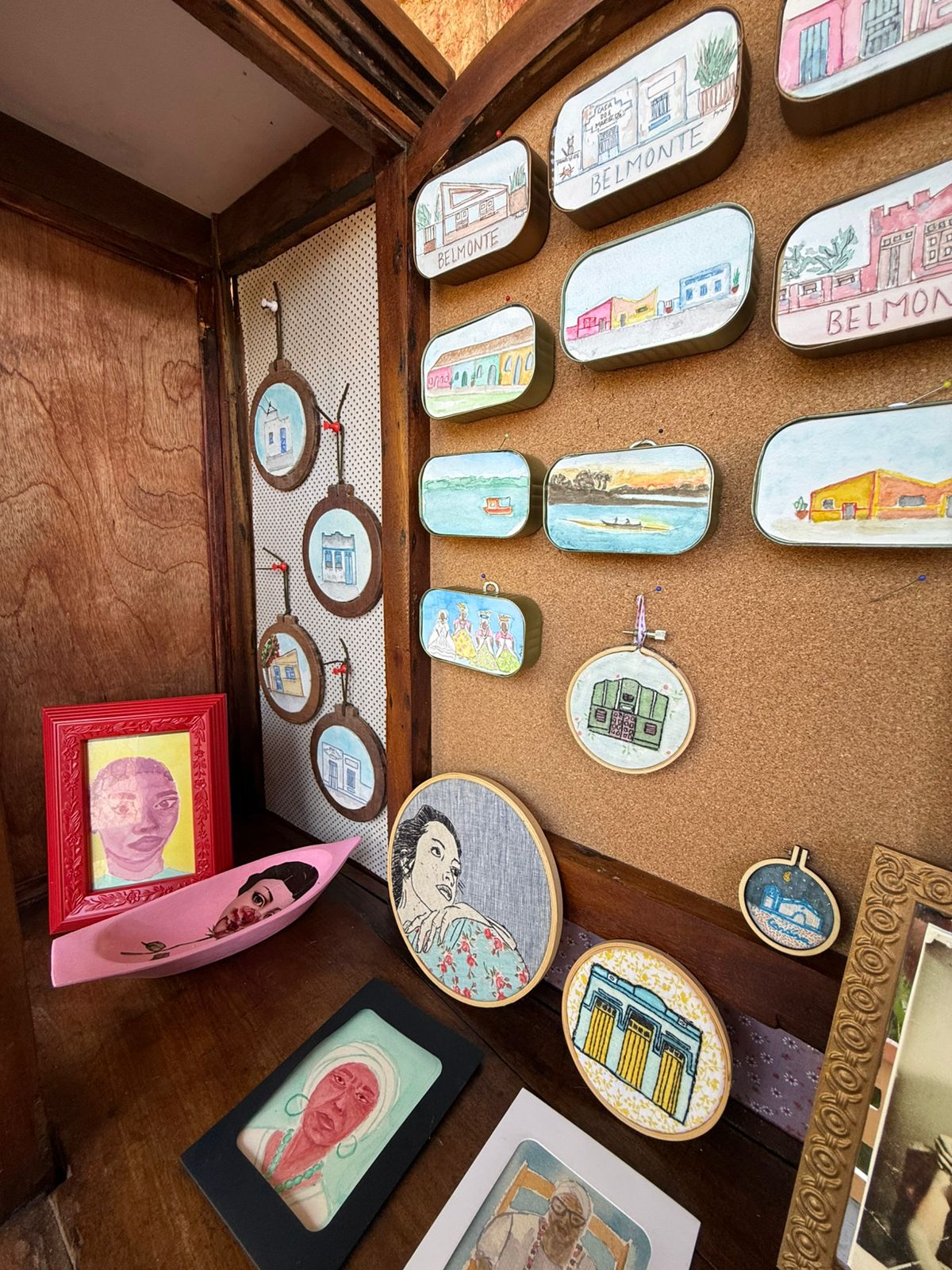 No Instagram, @anafaria.vidaautoral apresenta-se com a frase: “A casa é minha linguagem e território de transformação.” É um espaço que convida a sentar, conversar e ouvir a trajetória de quem saiu de Minas Gerais, passou por São Paulo e Brasília e desaguou no Jequitinhonha, quase chegando ao mar. Envolvida em diversos movimentos culturais, ela integra a pulsante cena artística da cidade. A delicadeza de suas aquarelas com bordados é belíssima. Atenção para as pinturas em latinhas de sardinha.